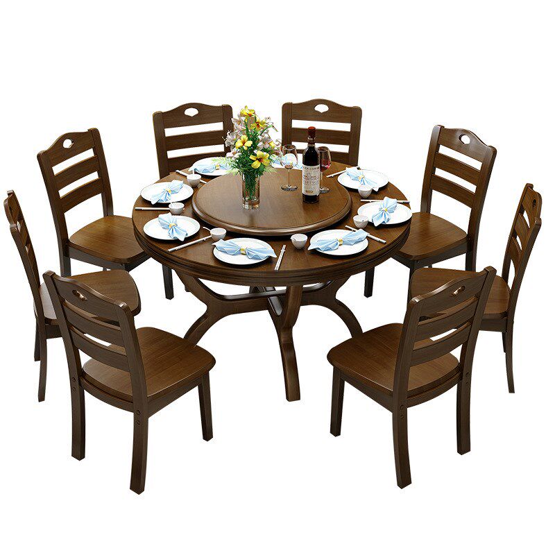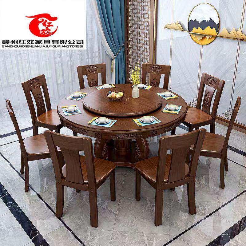 实木餐桌椅组合现代简约圆形桌饭桌6人8人小户型家用中式酒店餐桌