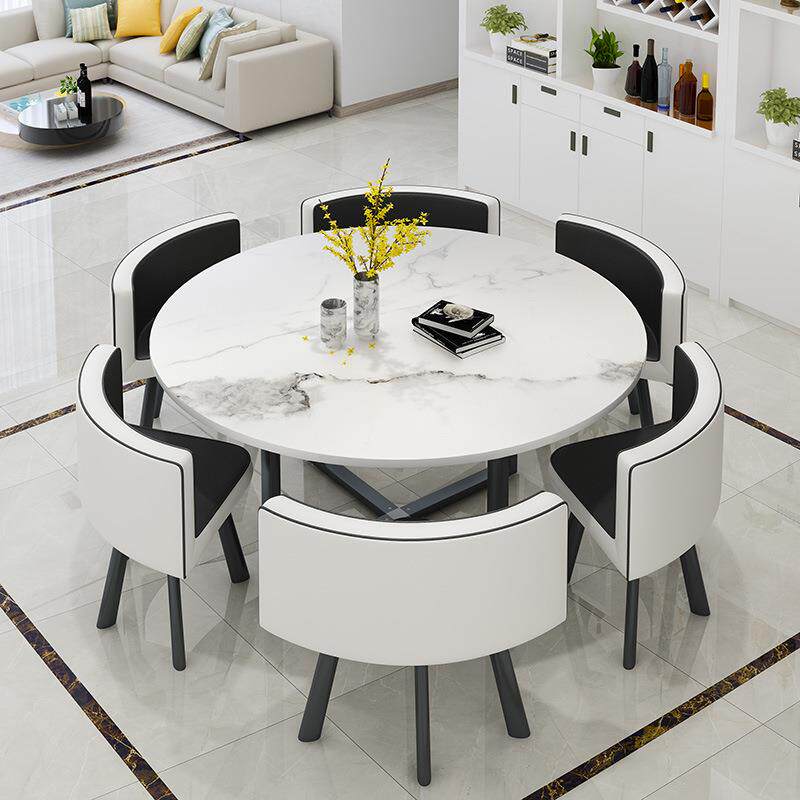奢轻桌圆形餐桌椅组合洽谈接待用会客现代简约休闲圆94家6人吃饭