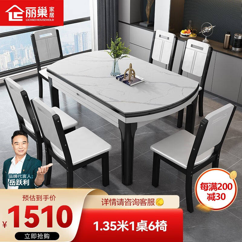 丽巢意式岩板餐桌家用小户型圆形4人6人饭桌轻奢餐桌椅组合618#1.