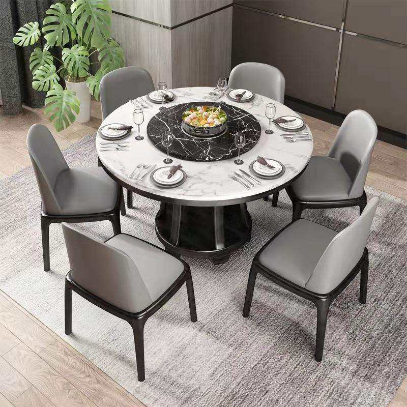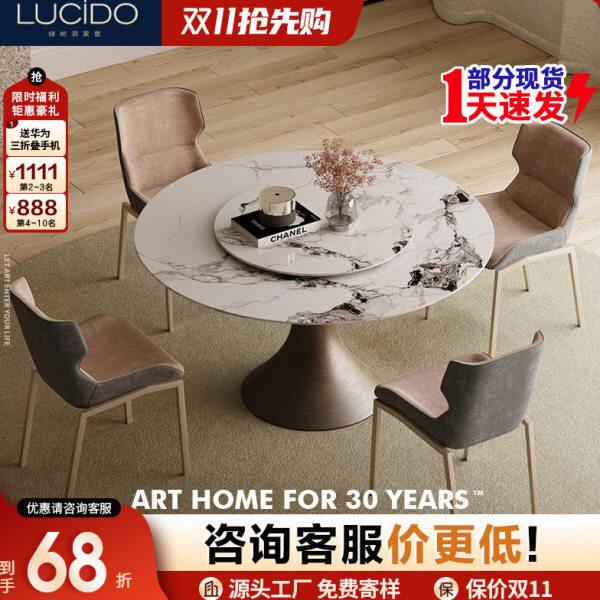 进口内带圆形餐桌板旋转圆餐桌高端岩轻奢转盘设计师椅嵌组合6人