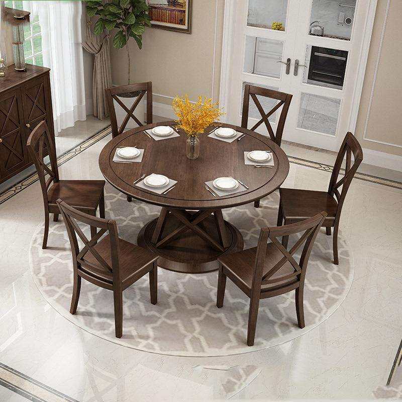 美式实木餐桌餐桌椅组合小户型圆桌子圆形饭厅4-6人吃饭桌子家用