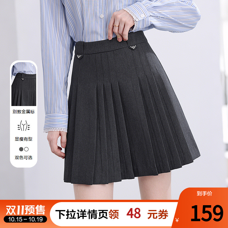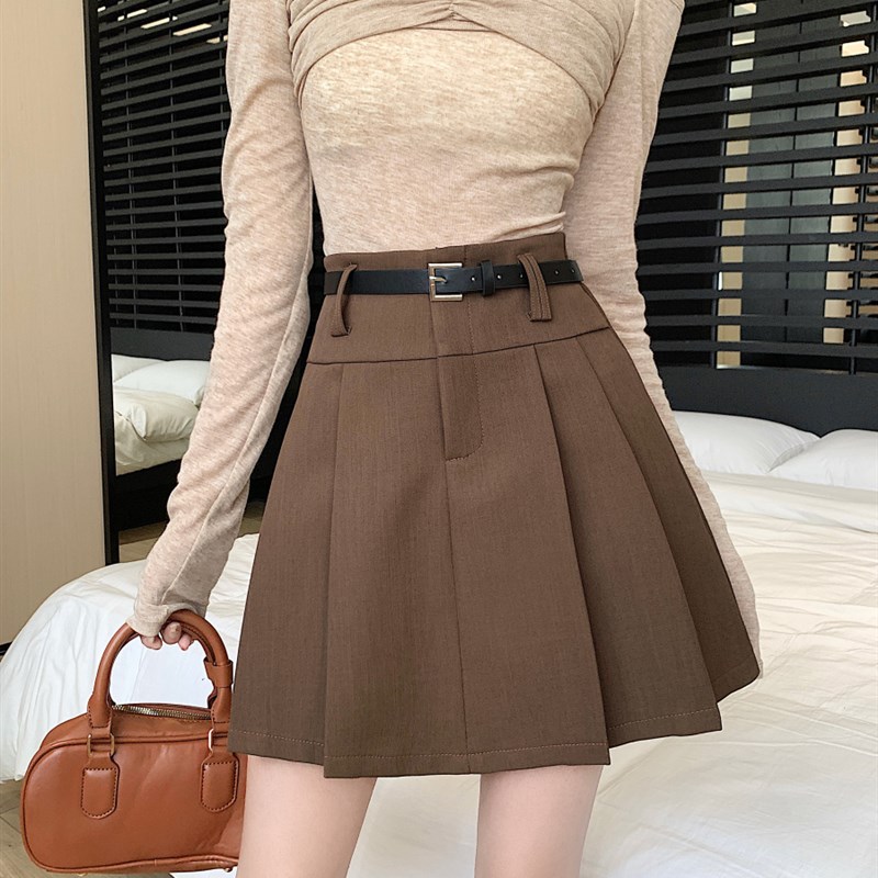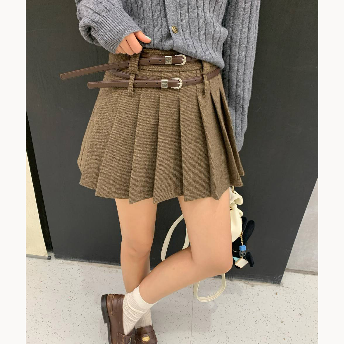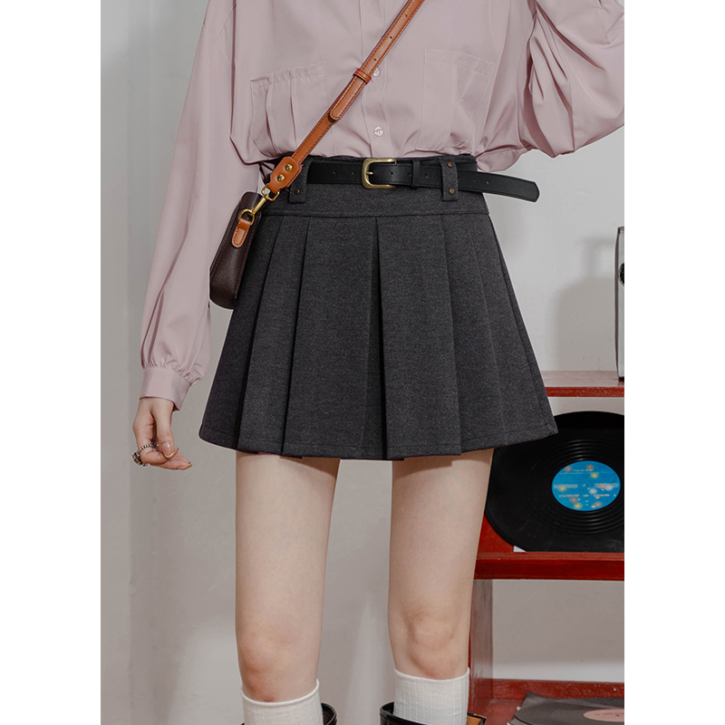 【一比Eby】高腰百搭通勤腰带百褶裙半身裙短裙短裤裙裤秋251457#