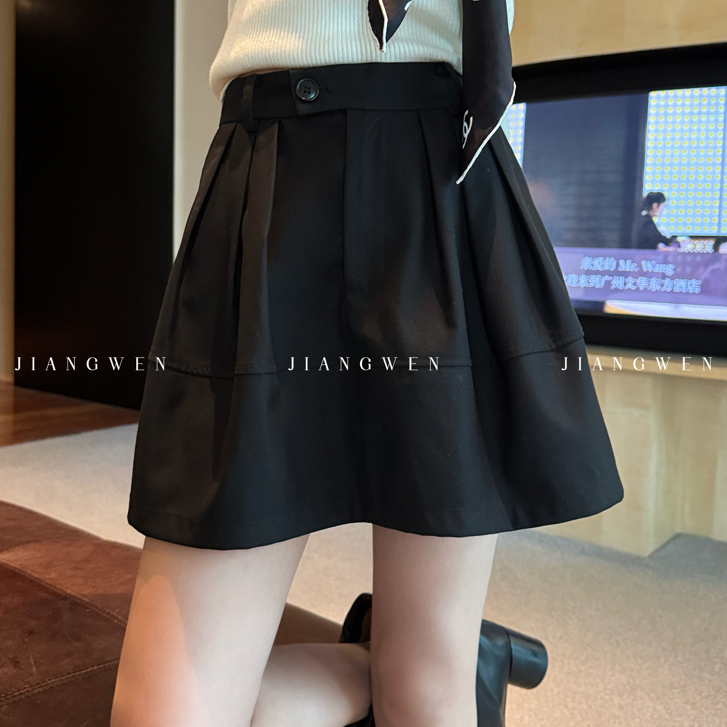 pusumede黑色a字半身裙裤女新款高腰显瘦防走光百搭气质西装短裙