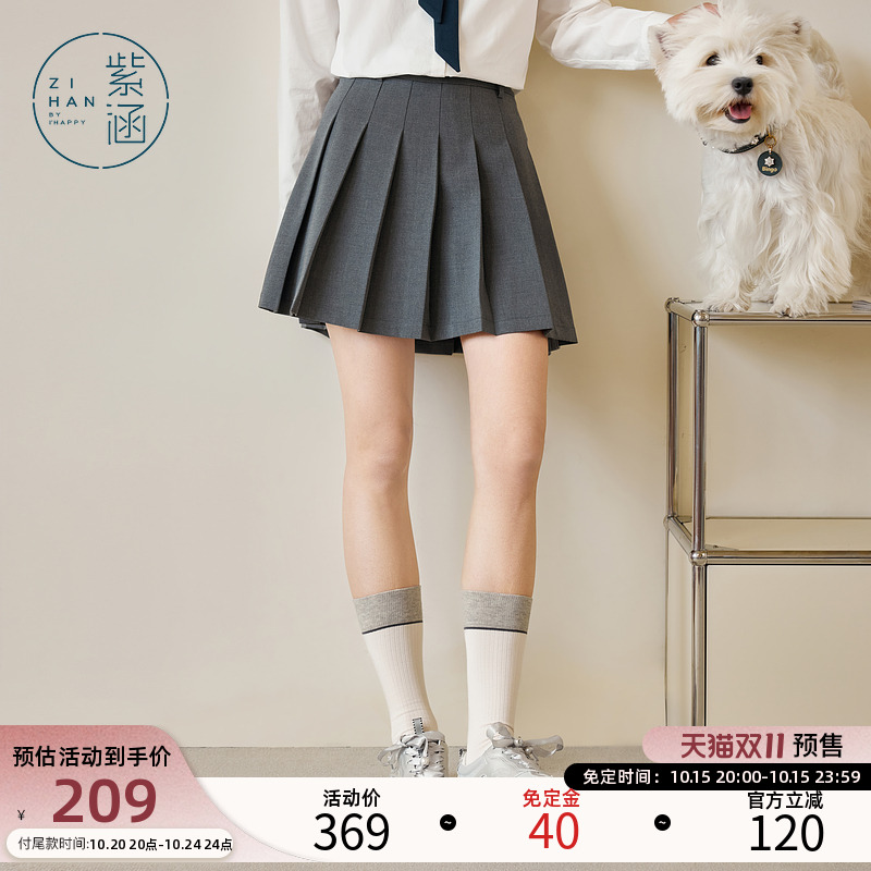 紫涵学院风百褶短裙女春秋季新款高腰显瘦JK裙百搭休闲a字半身裙
