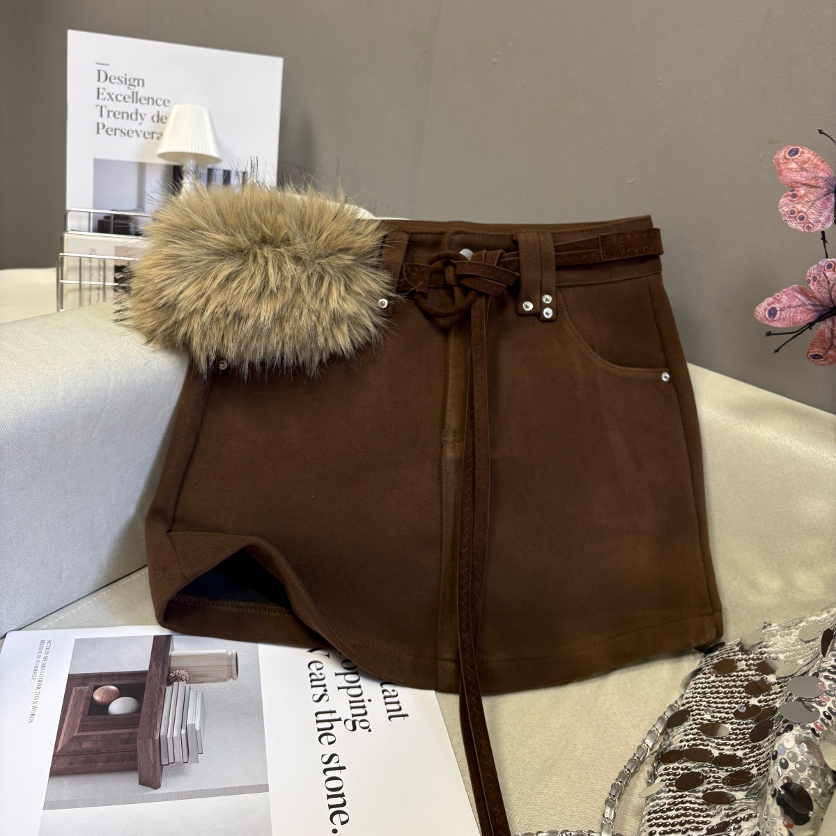 咖啡色灯芯绒半身裙女2024秋新款百搭a字裙高腰显瘦包臀腰带短裙
