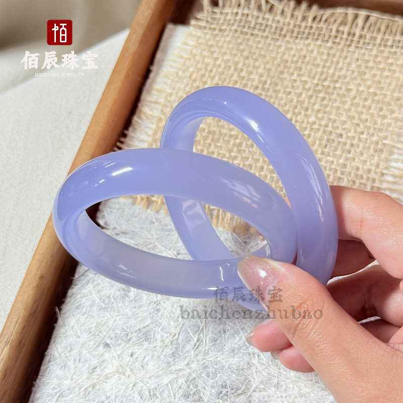 【圣诞礼物】周大生玉髓手镯女款玉镯子淡紫色平安镯芋泥波波生日