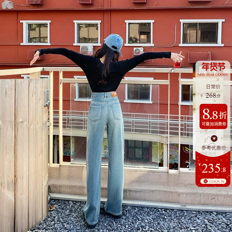 橘子树在哪儿浅色窄版阔腿牛仔裤女秋冬高腰显瘦垂感直简拖地长裤