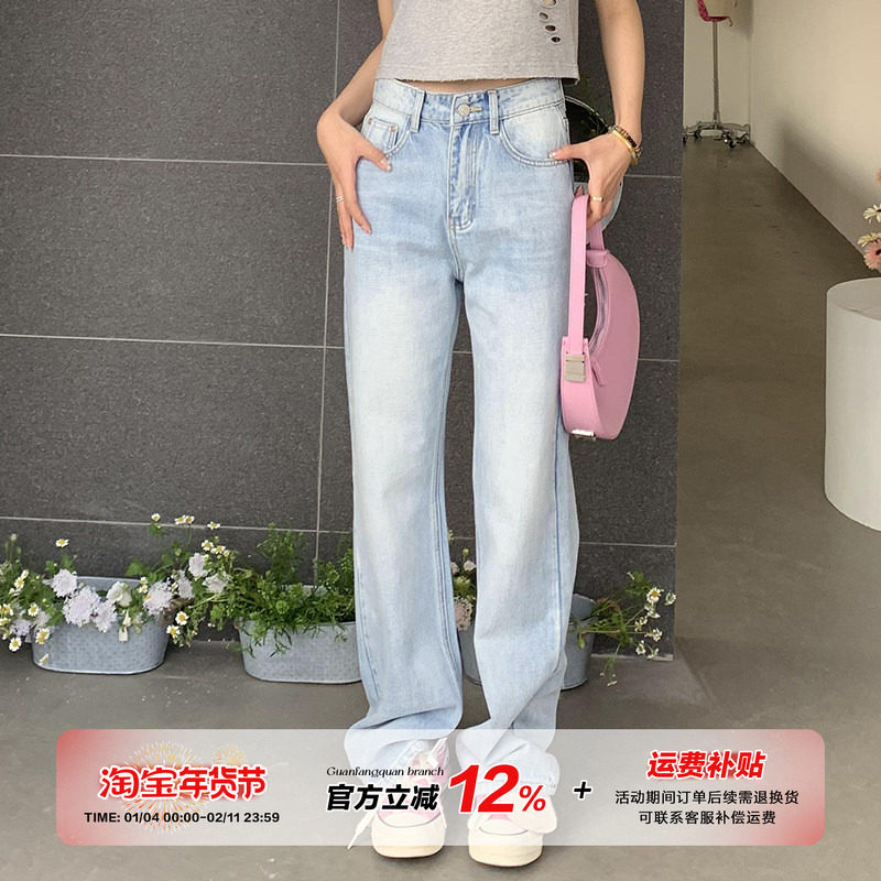 - 浅色牛仔裤女宽松长裤