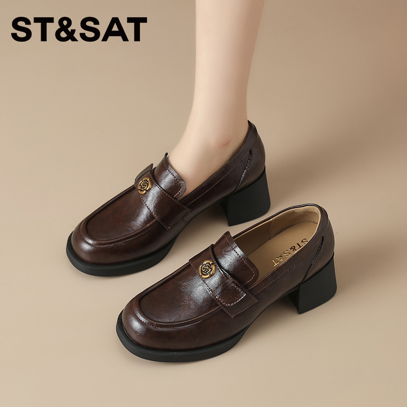 星期六粗跟乐福鞋女2025秋季新款复古英伦风小皮鞋一脚蹬高跟单鞋