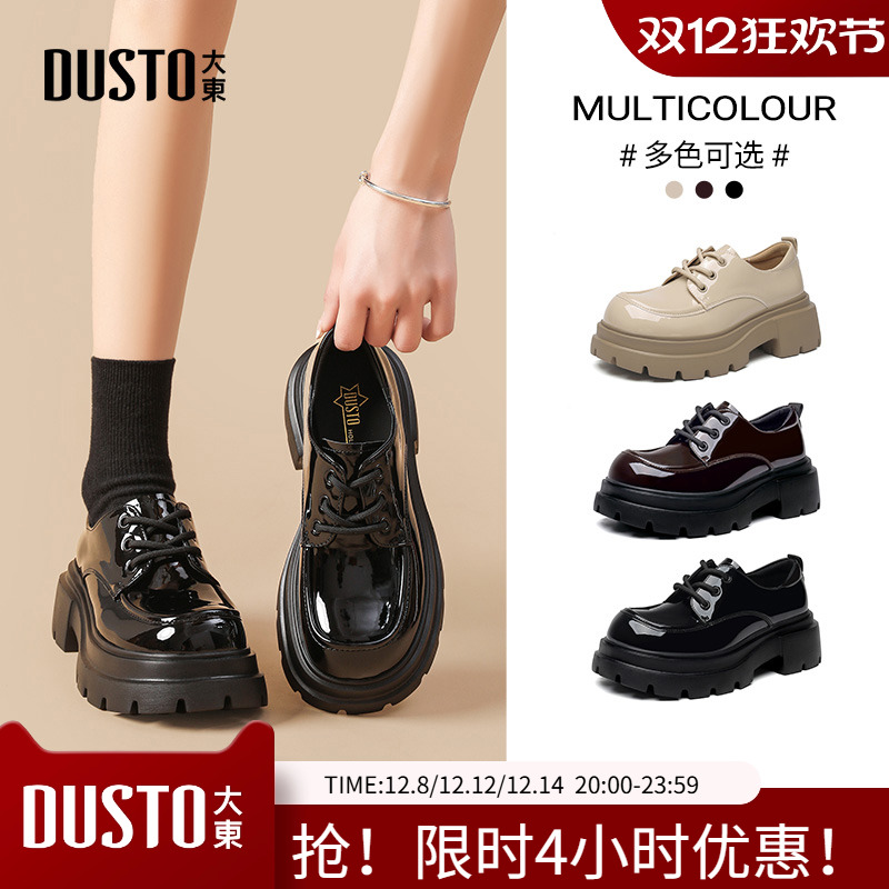 大东乐福鞋女鞋2025秋季新款英伦学院平底高跟系带方头厚底0133