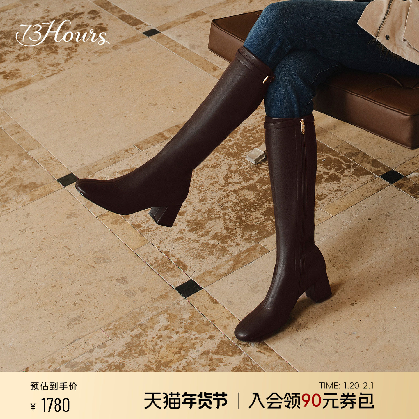 73hours女鞋蒙马特2025冬季新款高跟长筒靴英伦风时装靴子瘦瘦靴