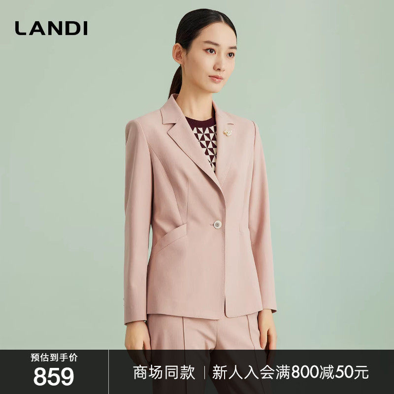 [商场同款]LANDI蓝地裸粉色休闲收腰职业西装外套女西服春新品