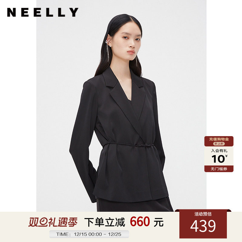 NEELLY纳俪商场同款夏季新款复古国风盘扣西装外套女优雅系带上衣