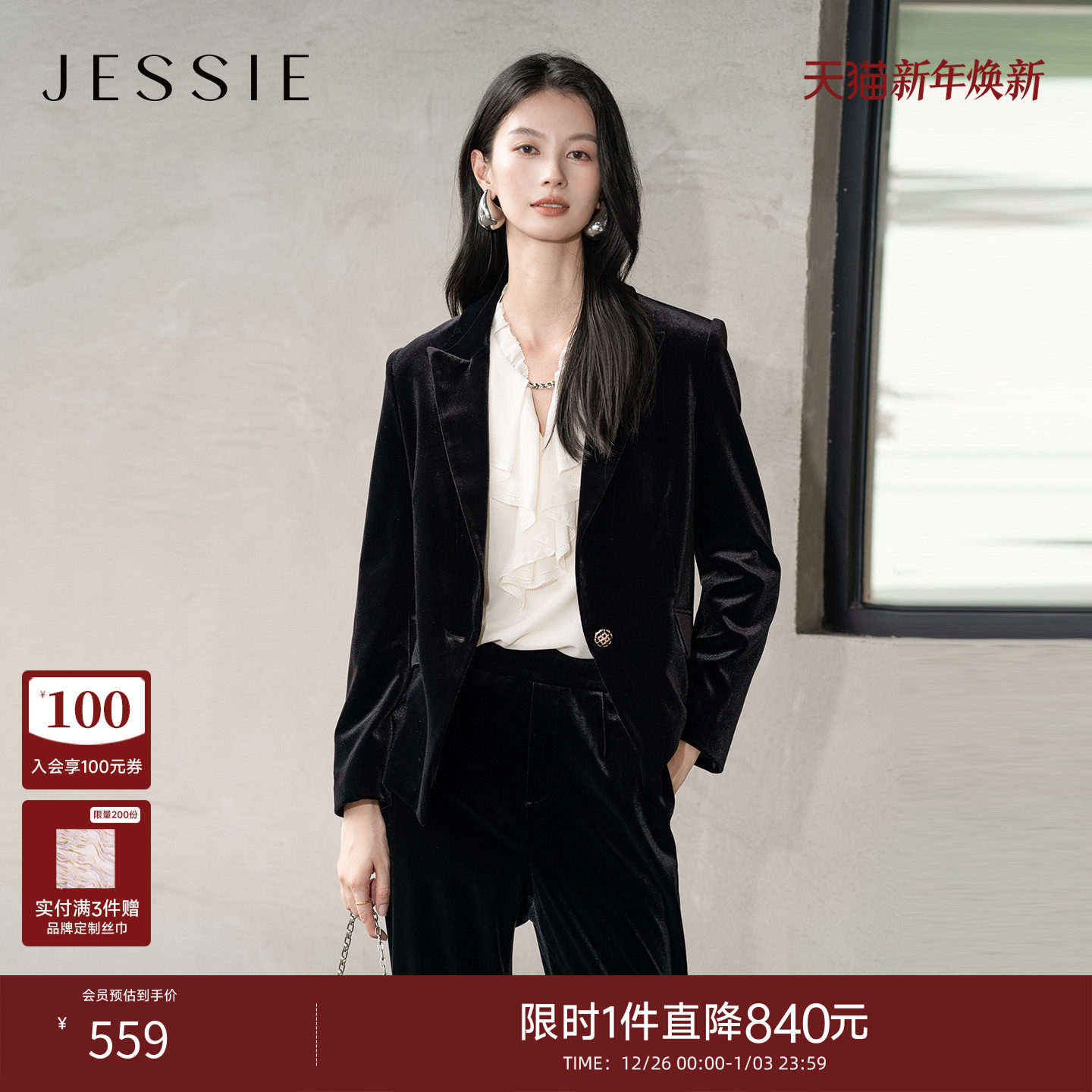 JESSIE流光智性风丝绒西装短外套女士修身职场套装2025年秋冬新款