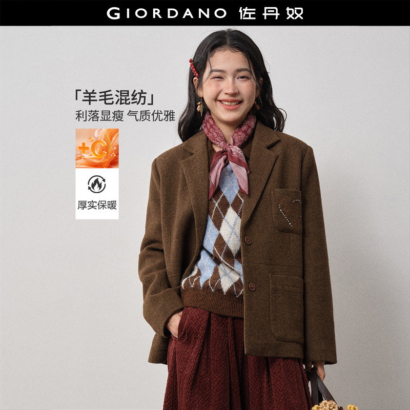 设计师款佐丹奴女装老钱风羊毛刺绣烫钻宽松毛呢西装外套18375302