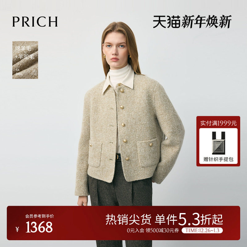 【绵羊毛+羊驼毛】PRICH法式小香风粗花呢西装2025冬新款短外套女