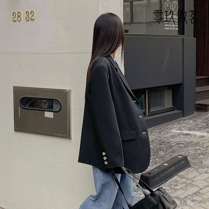 零玖微茗韩国大码新款西装宽松显瘦微胖MM中长款女西服外套78005