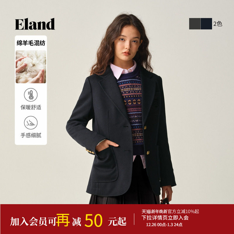 【绵羊毛】Eland衣恋西装女通勤两粒扣半里设计外套2025冬季新款