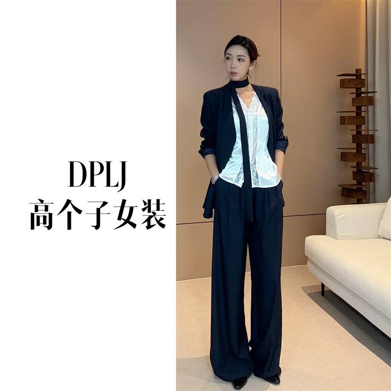 DPLJ大漂亮高个子加长宽松飘带西装套装女西服休闲西裤两件套L327