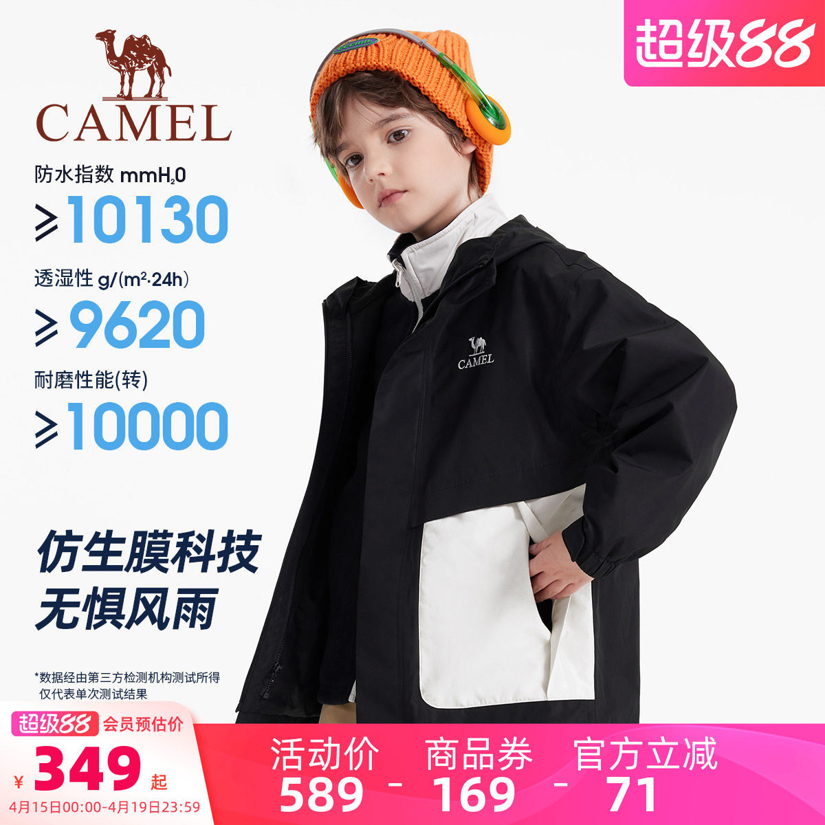 骆驼儿童冲锋衣三合一可拆卸大童户外防水风衣男童女童外套滑雪服