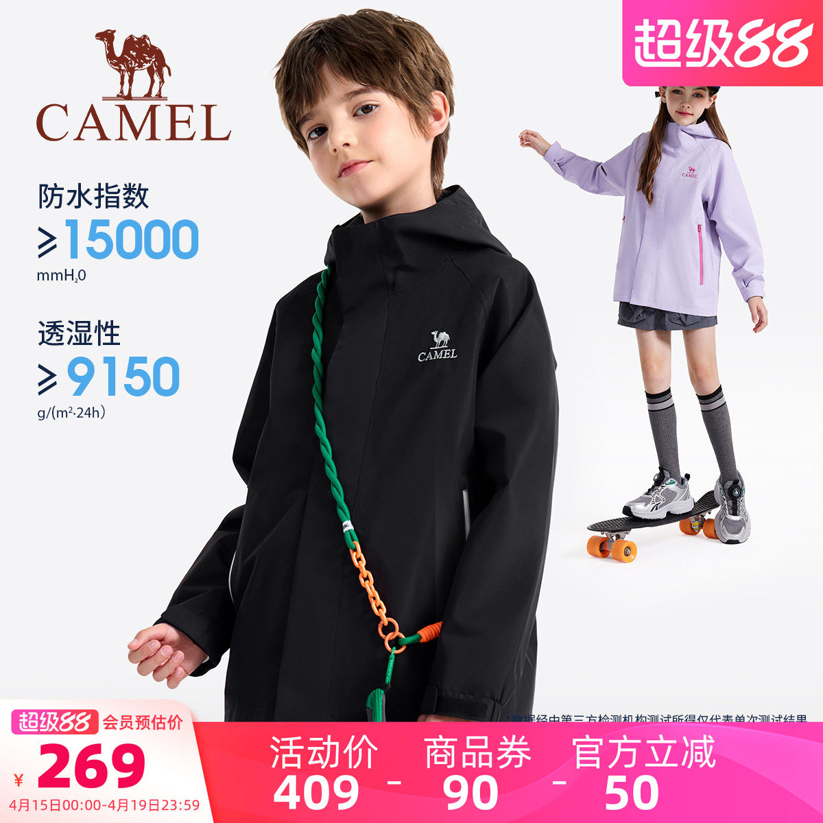小骆驼儿童冲锋衣2026新款防风防水风衣户外登山服男女童夹克外套