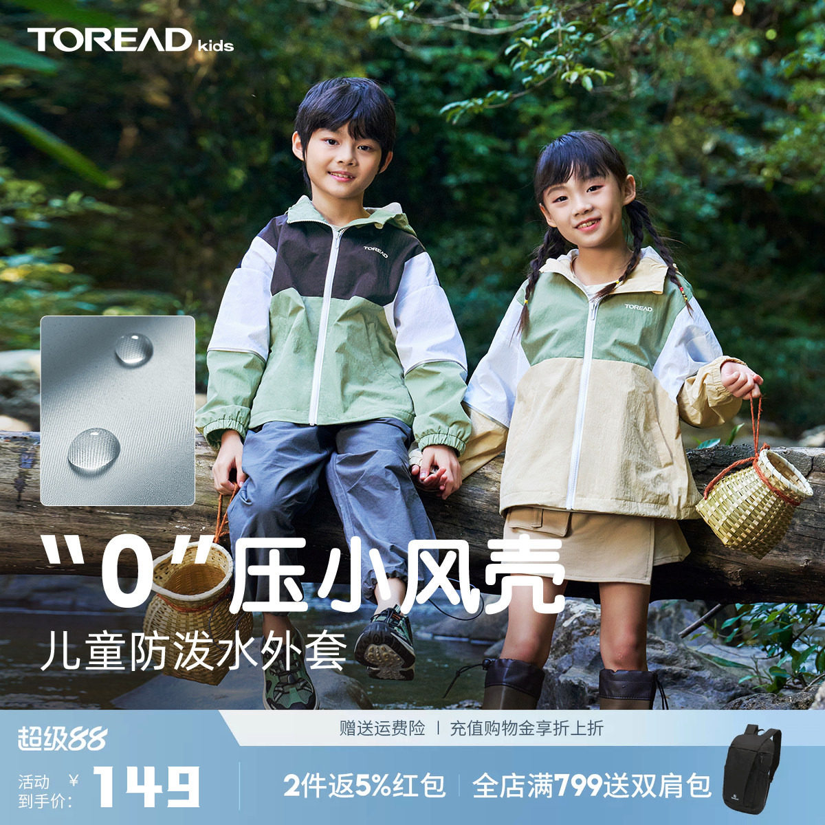 【小雨侠】探路者儿童功能外套2026年新款可拆卸男女童防泼水风衣