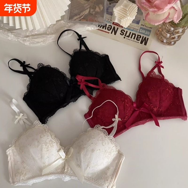 本命年红色内衣少女薄款显小胸聚拢无钢圈转幸运结婚性感文胸套装