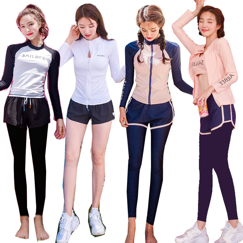 潜水服女分体平角显瘦长袖水母冲浪服保守学生运动防晒温泉游泳衣