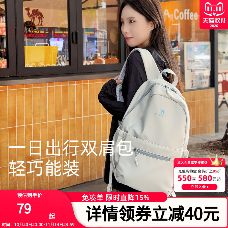 骆驼大学生书包双肩包女旅游轻便2025新款上课通勤电脑包小背包男
