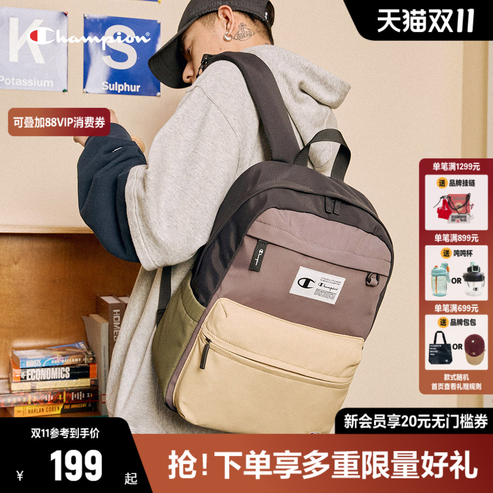 Champion冠军女士书包双肩包春季新款简约帆布双肩背包男初中学生