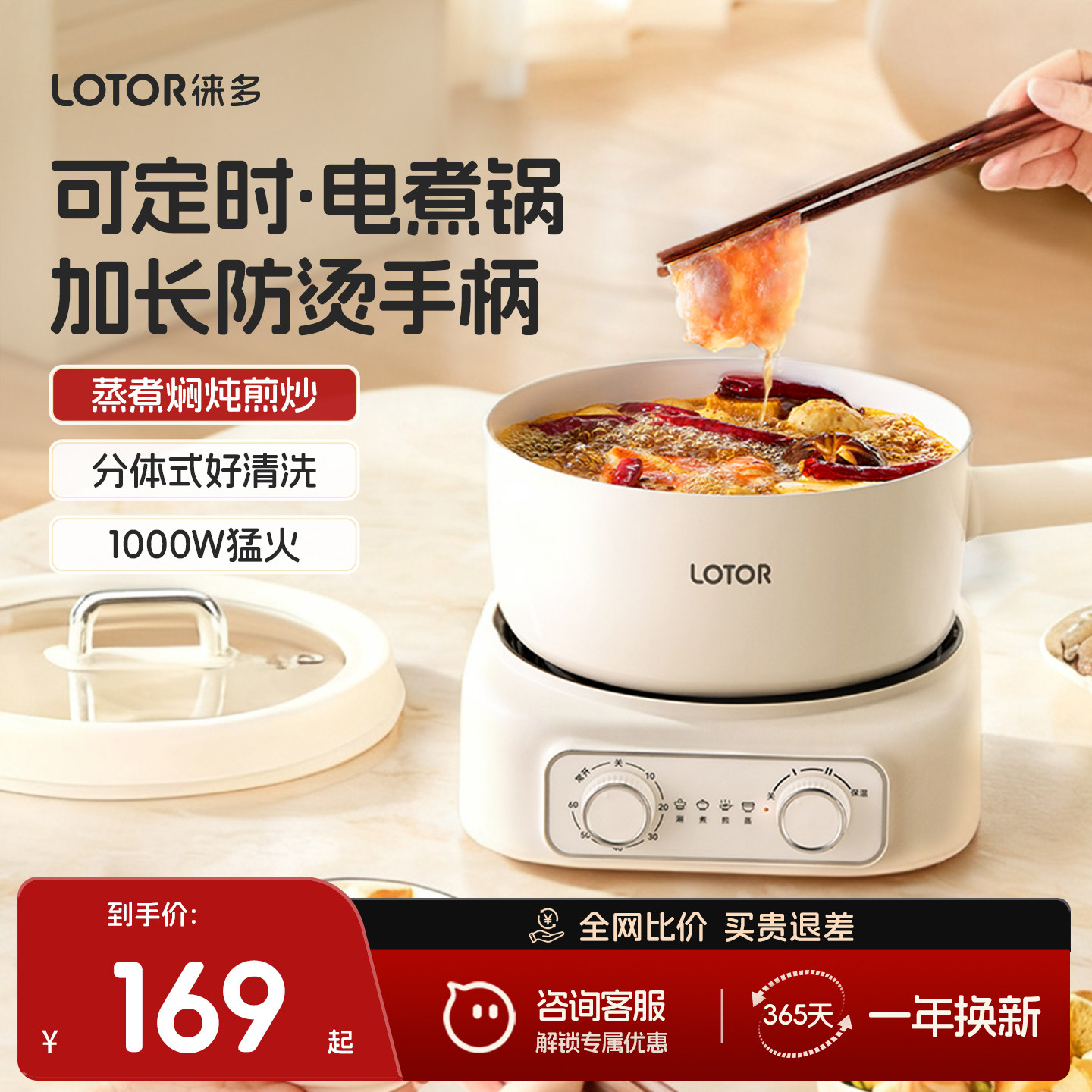 lotor徕多电煮锅分体式宿舍家用小型泡面小火锅蒸煮一人食小电锅