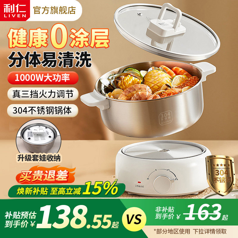 利仁小钢人电煮锅不锈钢分体电火锅小型多功能学生宿舍煮面小电锅