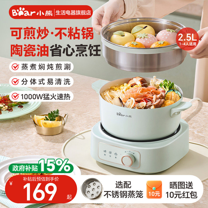 小熊电煮锅家用宿舍多功能小型分体式电火锅蒸锅电炒锅泡面小电锅