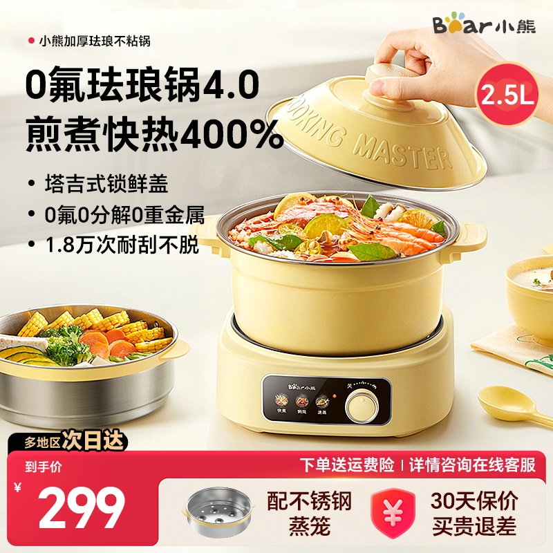 小熊珐琅锅电煮锅家用宿舍小型分体式电火锅蒸锅电炒锅泡面小电锅