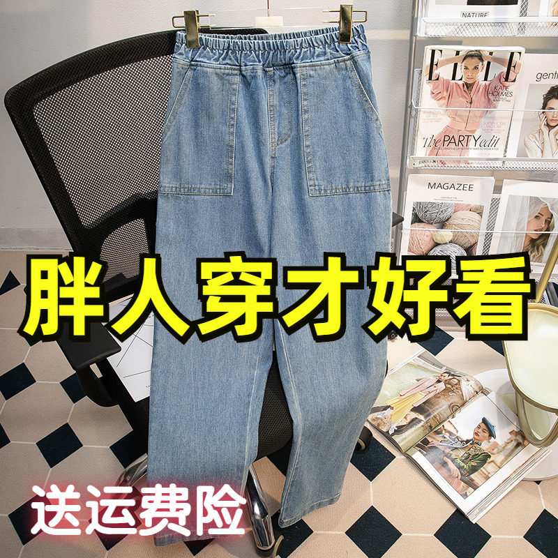 大码牛仔裤女秋冬2021年新款哈伦老爹裤胖妹妹韩版宽松显瘦萝卜裤