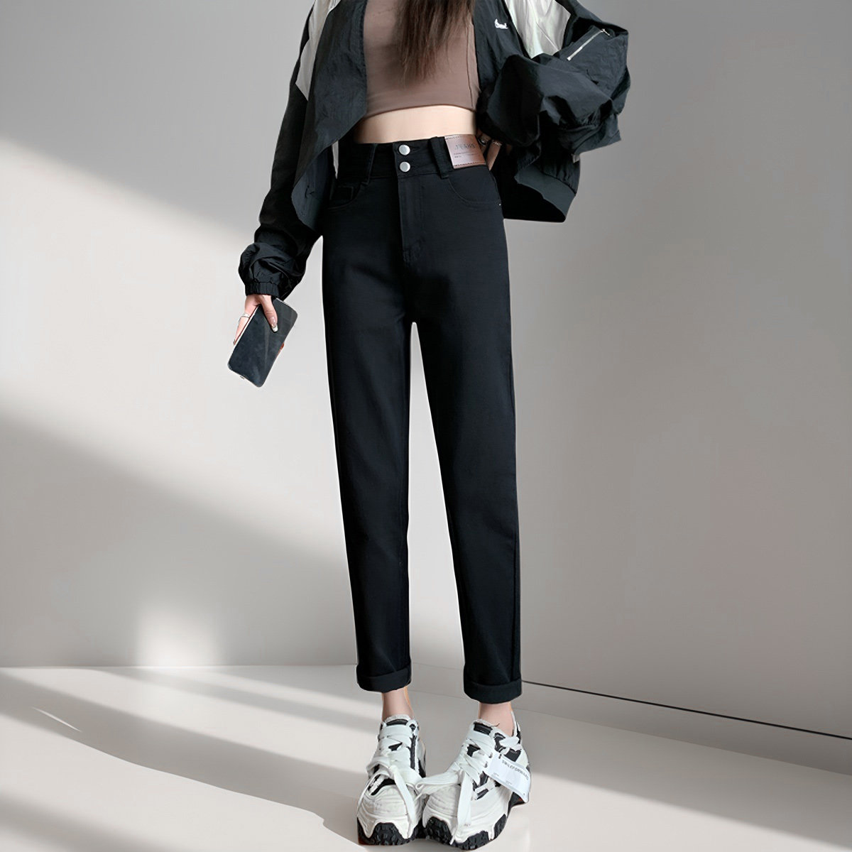 韩版显瘦高腰牛仔老爹女春秋冬宽松显高直筒小脚萝卜哈伦裤子ins