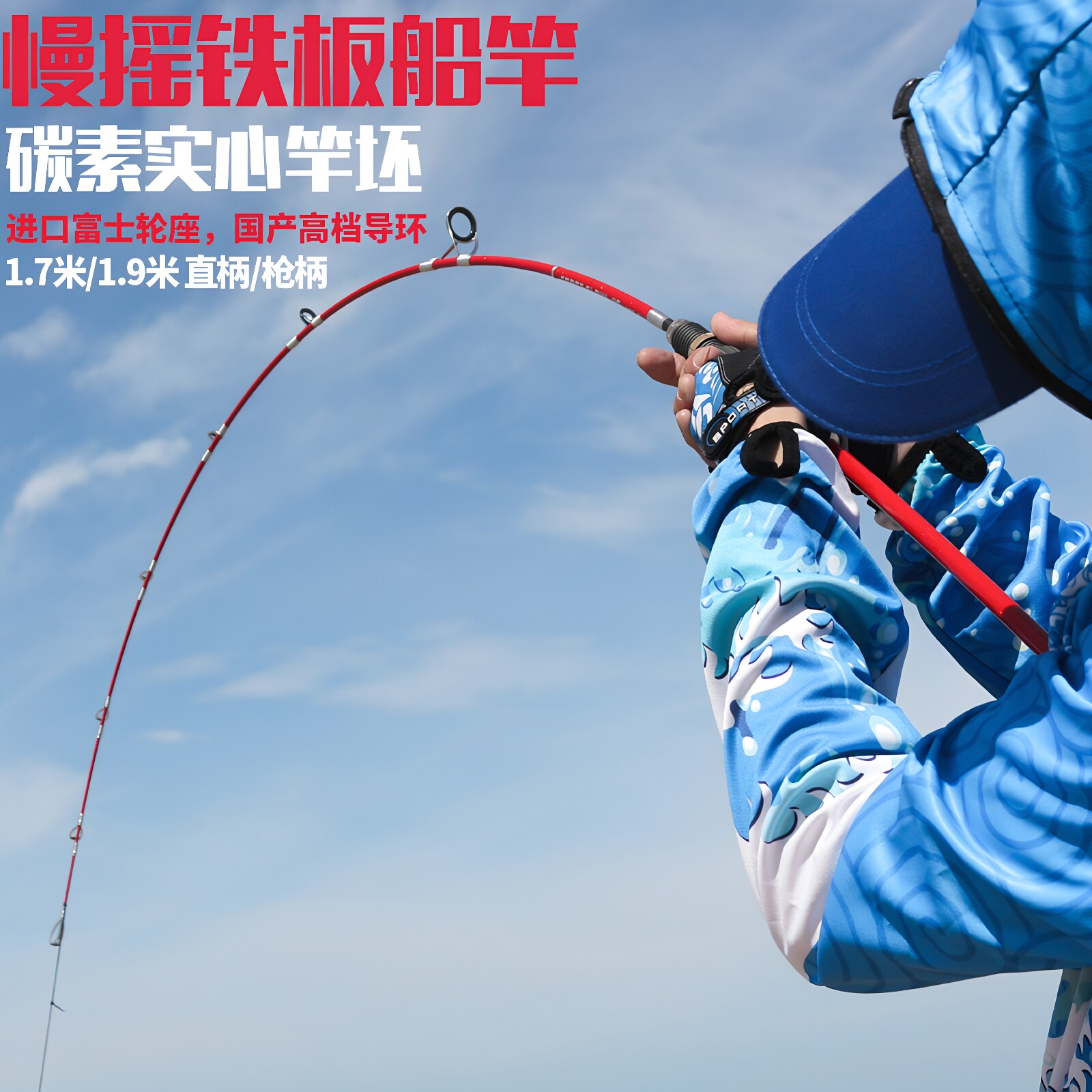 引路人实心混元弓1.9米慢摇铁板竿富士船钓竿海钓竿轻型铁板竿