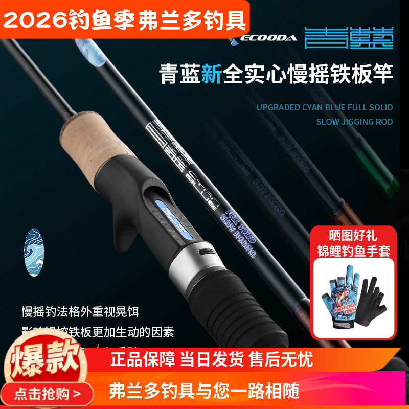 青蓝二代新实心慢摇铁板竿海竿船钓竿海杆远投海钓鱼竿伊酷达超硬