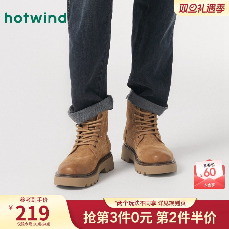 热风男鞋2025年冬季新款马丁靴男士时尚休闲靴英伦风复古工装靴男