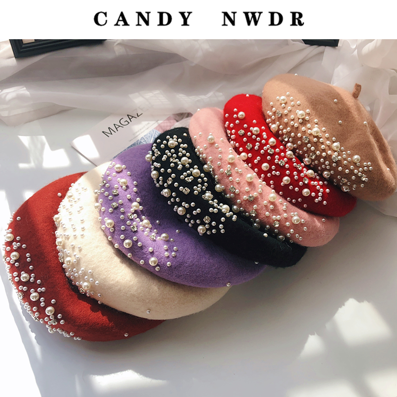帽子女韩亲子珍珠羊毛呢女童秋冬季 小香风蓓蕾帽网红ins贝雷帽子
