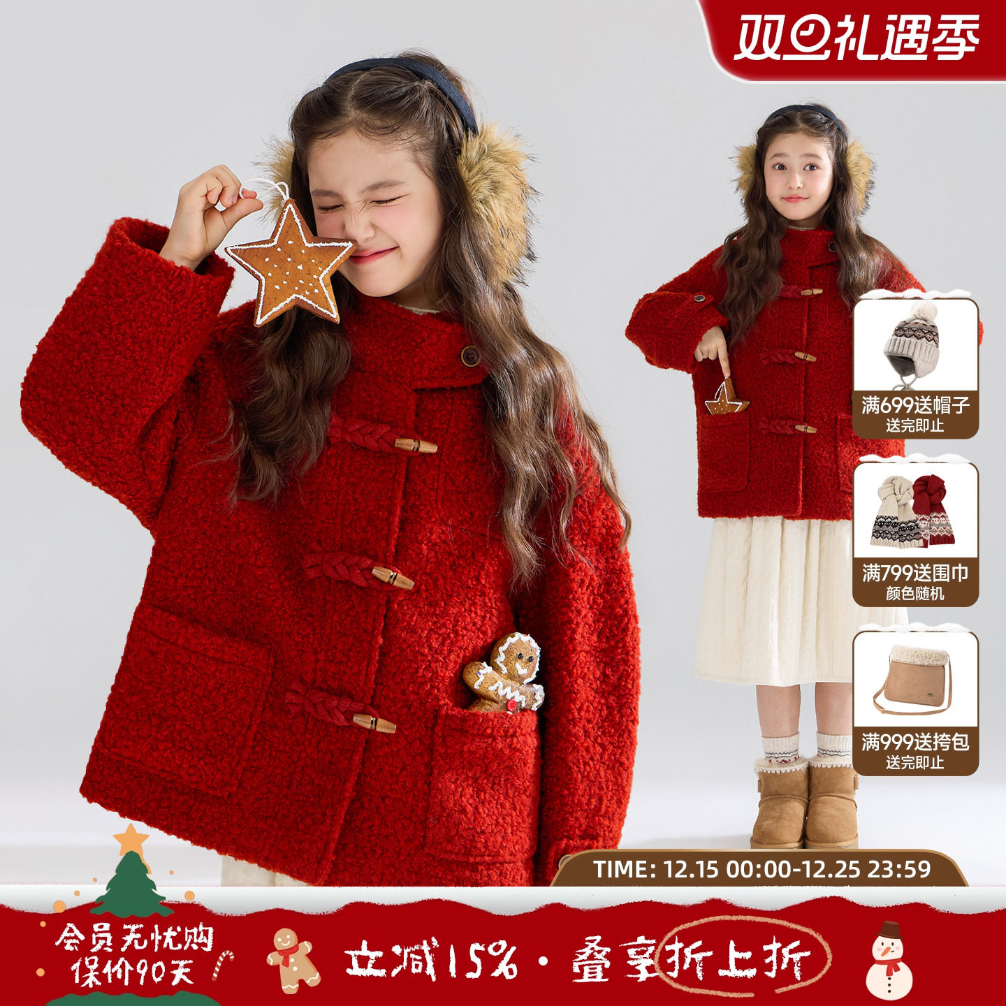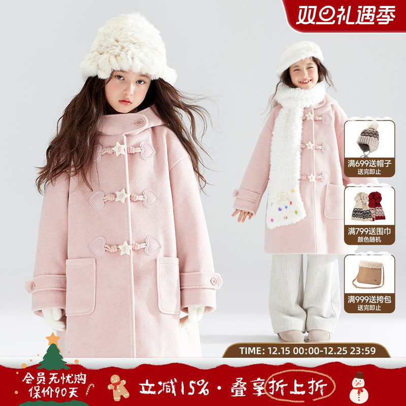 MUCMUKN【新年序曲】圈圈羊毛呢牛角扣连帽大衣保暖外套女童冬新
