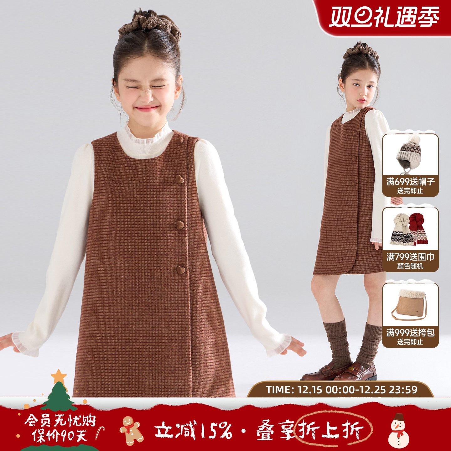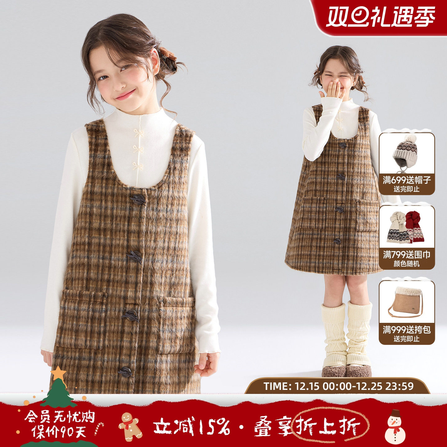 MUCMUKN【栗子松饼】复古格纹含羊毛呢背心连衣裙子女童25冬新款