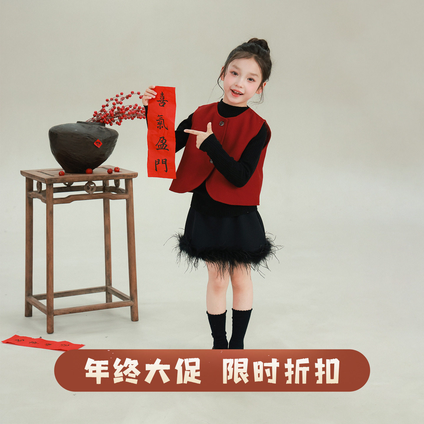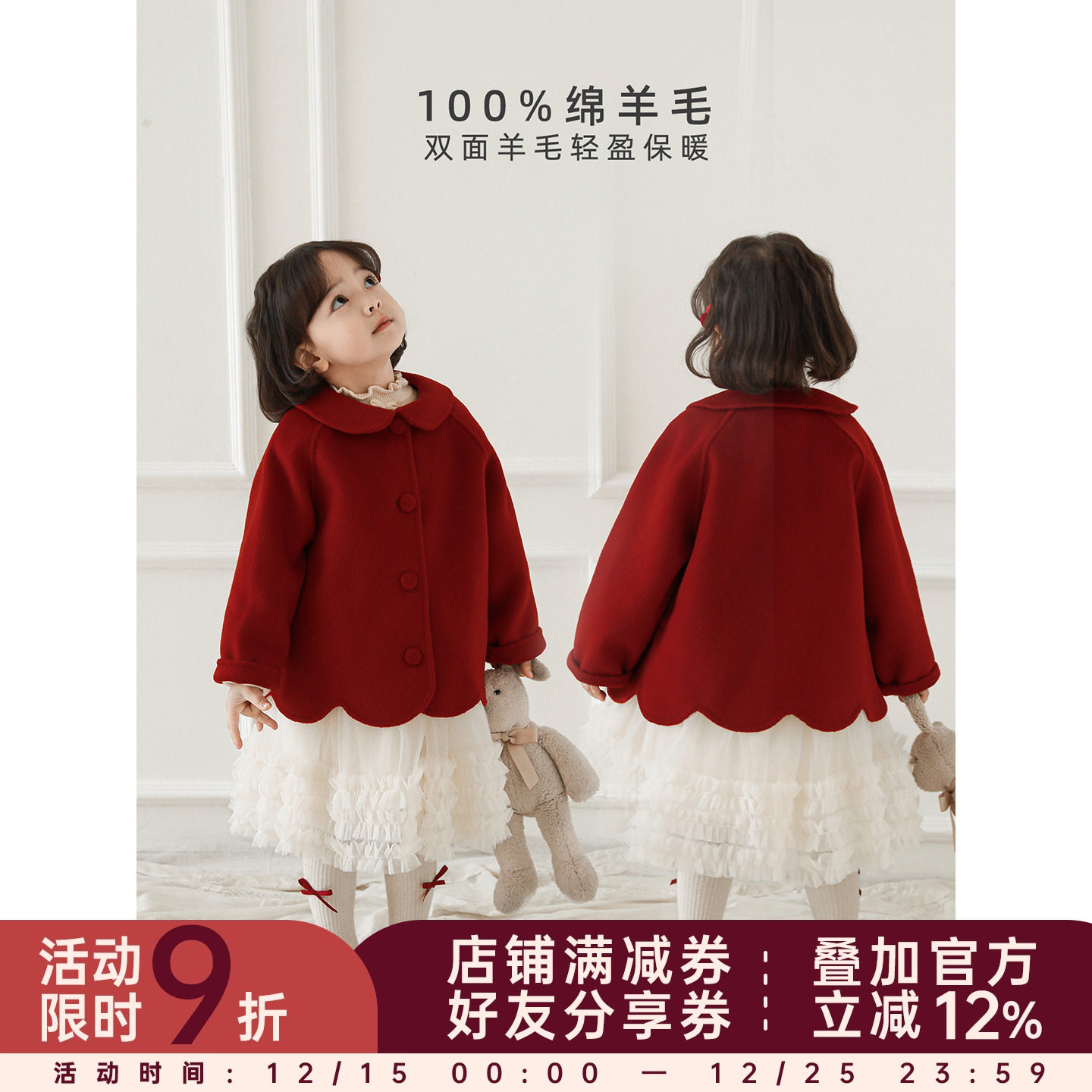 【千金喜乐】小O宝童装 宝宝红色毛呢大衣女中长款冬女童新年外套
