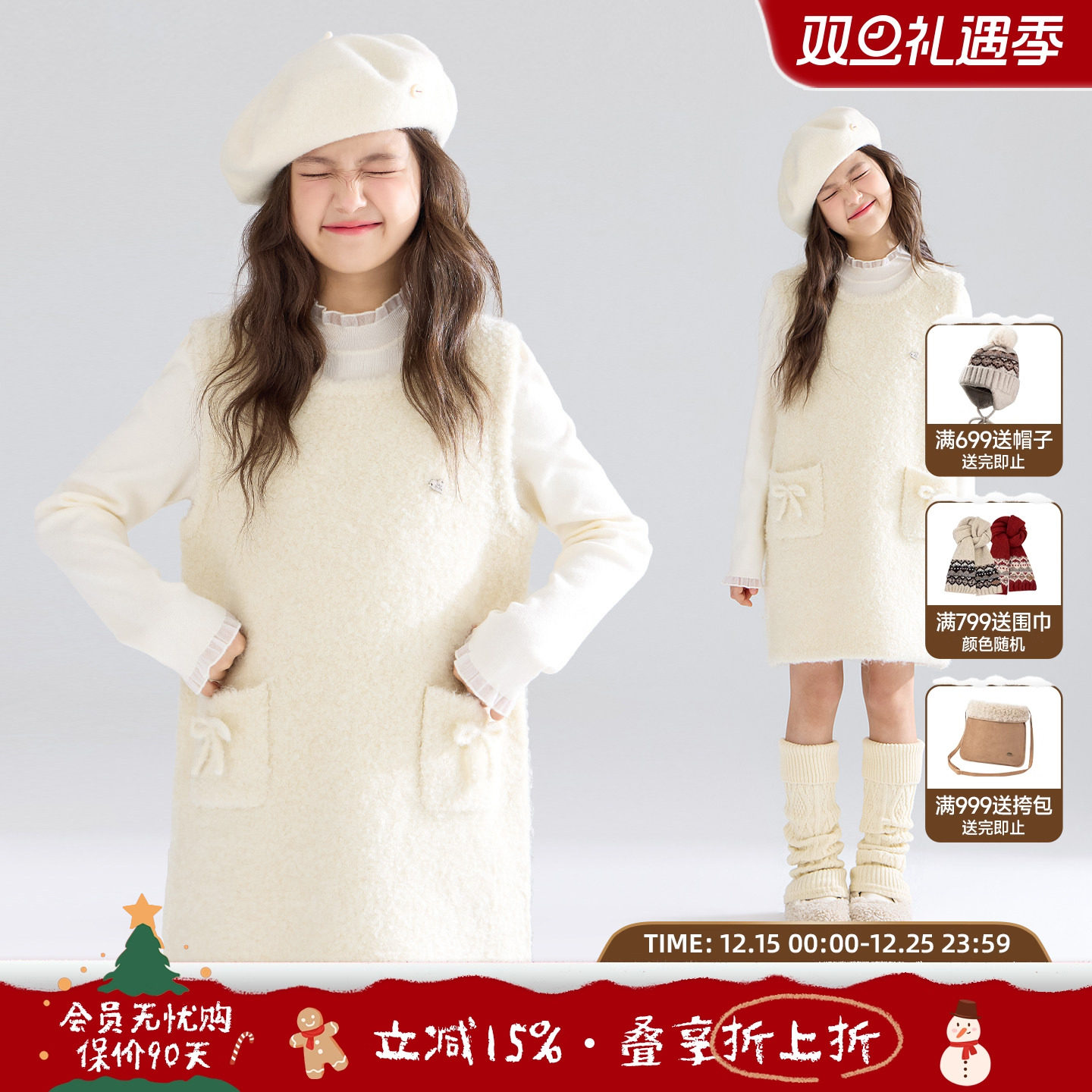 MUCMUKN【奶油小绵羊】软糯圈圈羊毛呢背心裙子连衣裙女童25冬新