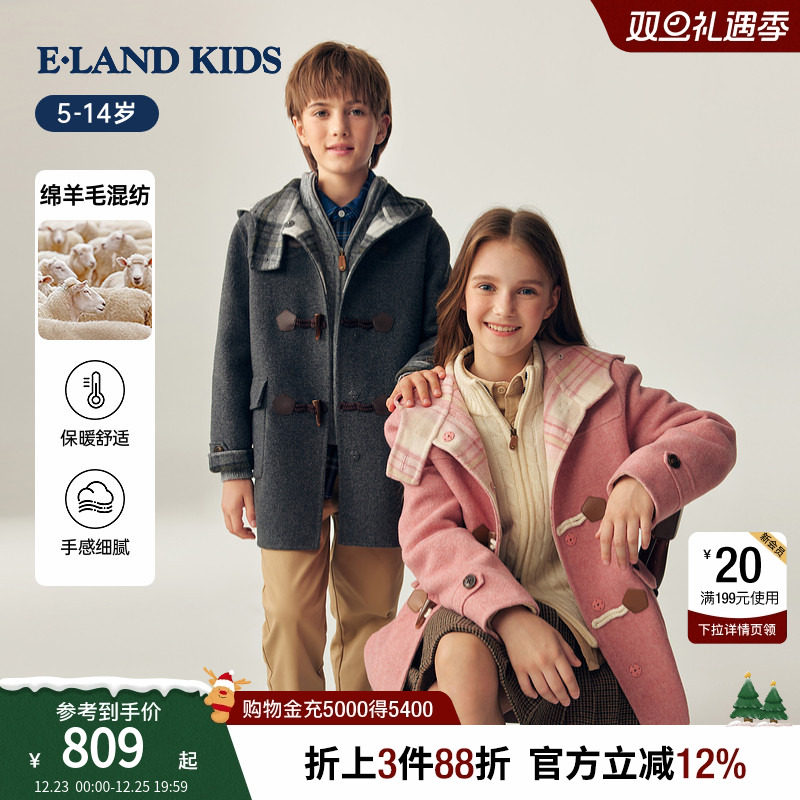 【含绵羊毛】eland kids衣恋童装男女童毛呢大衣25年冬季新品外套