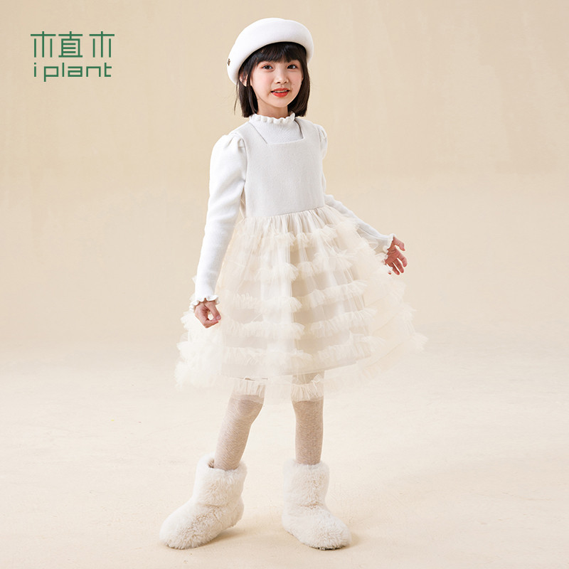 【秀场同款】植木童装拼接网纱毛呢女童连衣裙2025秋冬儿童背心裙