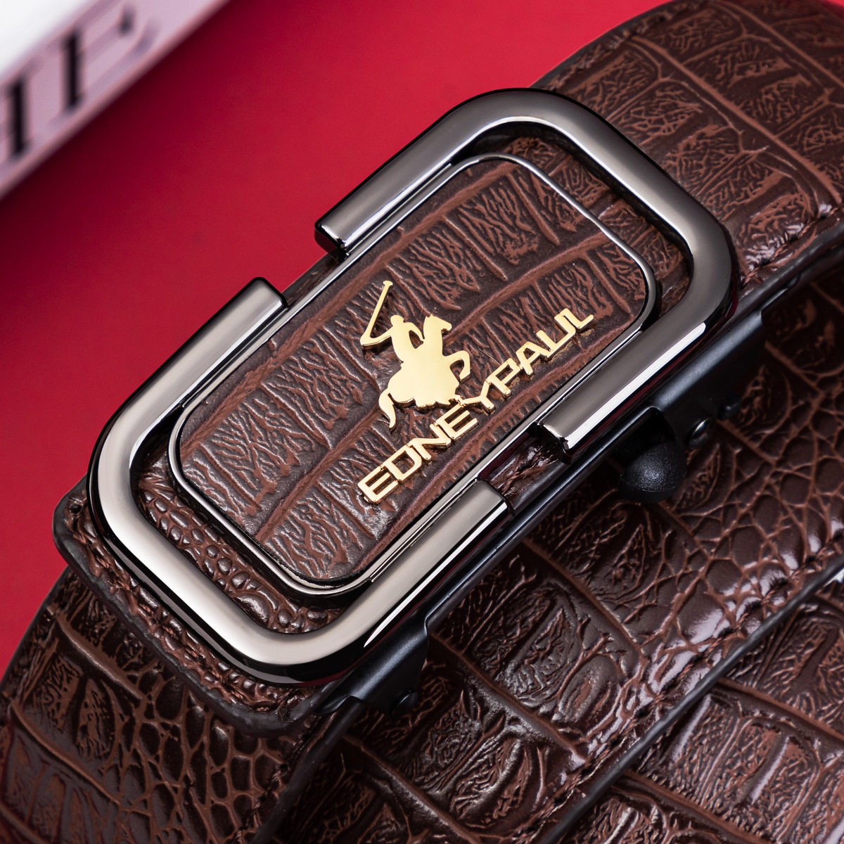 保罗正品男士皮带真皮牛皮自动扣腰带结实耐用百搭潮流休闲裤腰带