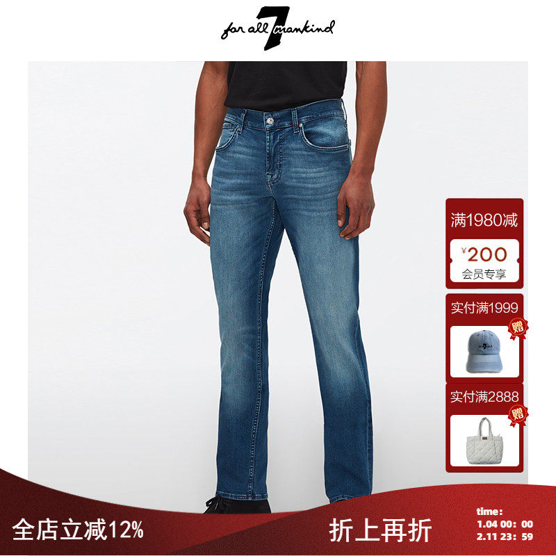 7 For All Mankind男装中腰牛仔裤复古水洗舒适弹力修身长裤SLIM
