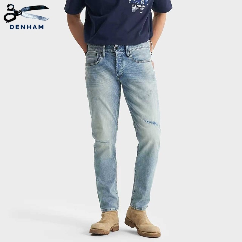 DENHAM时尚做旧设计FREEMOVE高弹力修身中腰剪刀牛仔裤男RAZOR