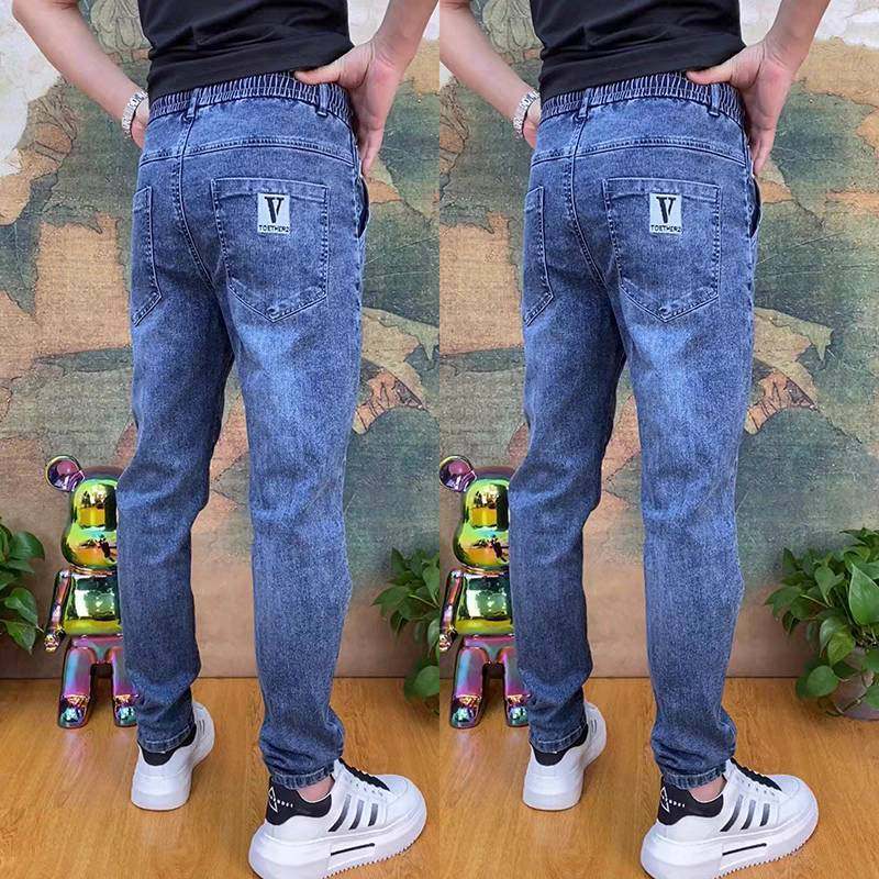 九分牛仔裤男夏季新款弹力修身小脚牛仔裤子男士宽松直筒休闲长裤